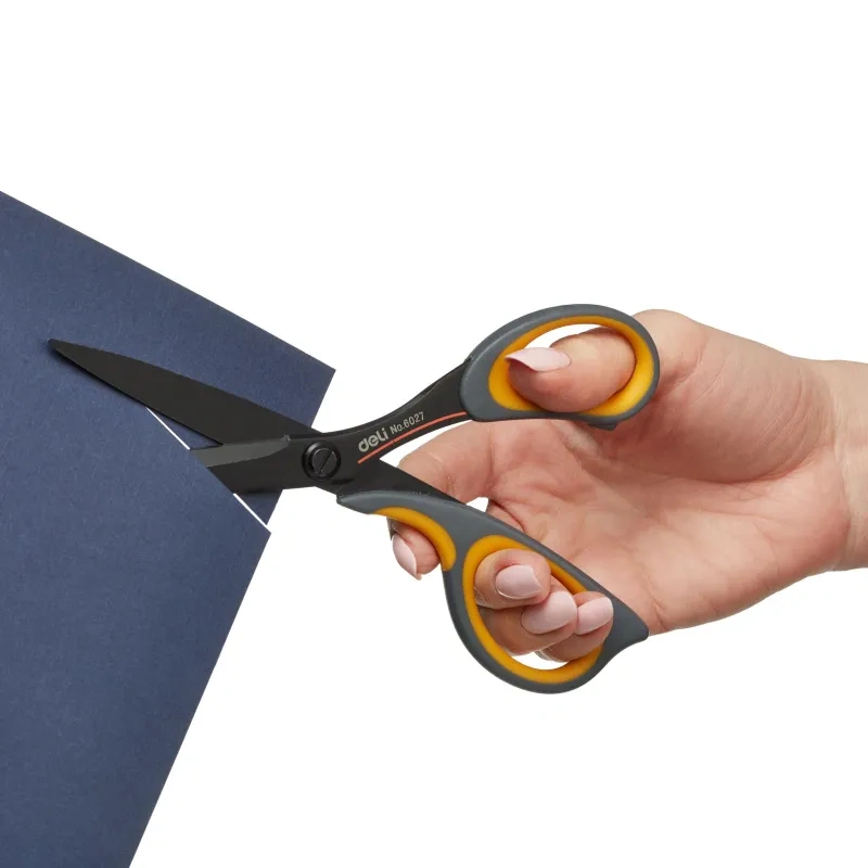 Ножницы Deli высокого качества подходят для работы в офисе, школе и дома. Пластиковые кольца удобной эргономичной формы с прорезиненными вставками позволяют максимально комфортно осуществлять любые работы с ножницами. Они подходят как для правшей, так и для левшей. Лезвия выполнены из высококачественной нержавеющей стали. Такие ножницы отлично подойдут для детского творчества и художественно-оформительских работ.