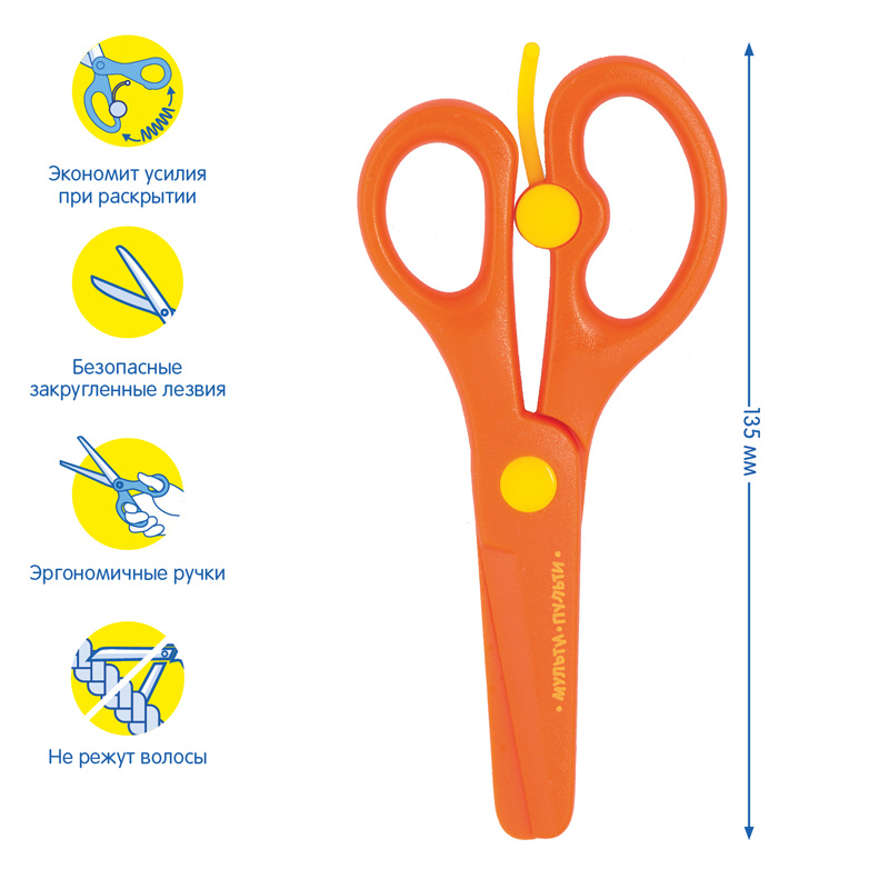 Ножницы для детского творчества «Мульти-Пульти» «Приключения Енота» выполнены из высококачественного пластика. Компактный размер 13,5 см легко помещается в пенале. Закруглённые концы лезвий обеспечивают безопасное использование. Ручки удобной формы изготовлены из высококачественного пластика с усилителем. Красочная картонная упаковка дополнена европодвесом. Товар сертифицирован для детей от 3 лет.
