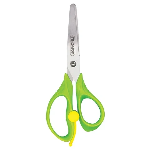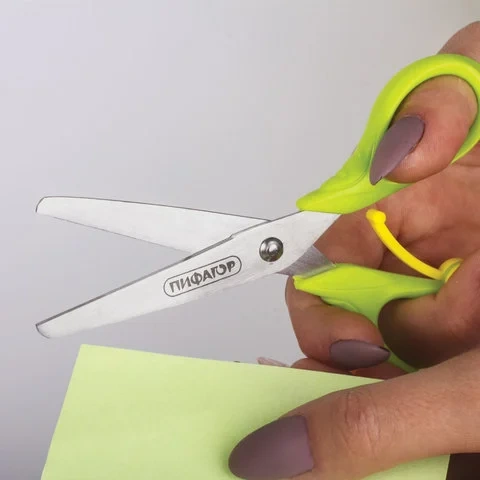 Ножницы ПИФАГОР, 130 мм, с усилителем, линейкой, зеленые, в картонной упаковке с европодвесом, 23685