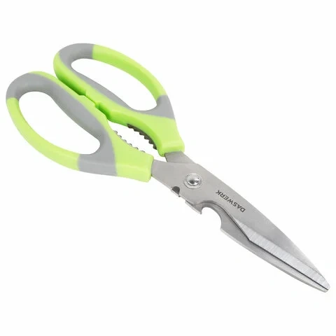 Ножницы отлично подойдут для разделки рыбы и мяса птицы, нарезки овощей, зелени и пиццы. Будут эффективны при резке бумаги, картона, текстильных материалов, а также справятся с подрезкой комнатных и садовых растений.