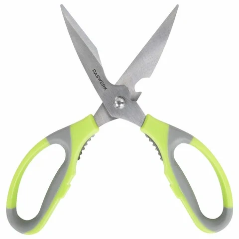 Ножницы кухонные DASWERK, 210 мм, с орехоколом, открывашкой, зазубренным лезвием, 608903