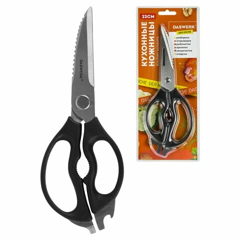 Ножницы кухонные DASWERK, 230 мм, разборные, с открывашками, зазубренные, 608906