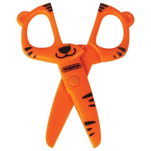 Ножницы ПИФАГОР 'Тигренок', 120 мм, с безопасными пластиковыми лезвиями, оранжевые, картонная упаков