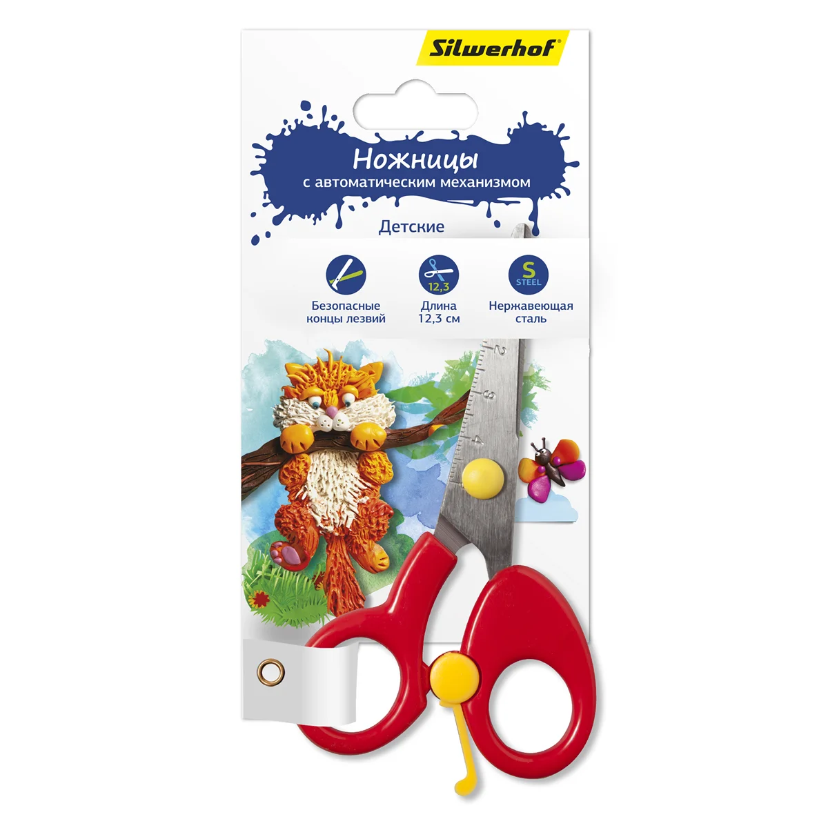 Ножницы Silwerhof Пластилиновая коллекция детские 123мм ручки пластиковые фиксатор блистер