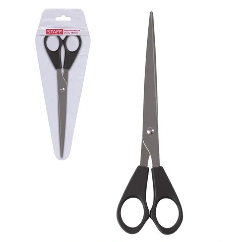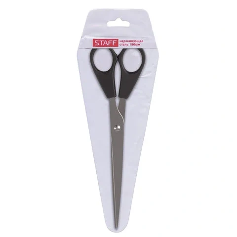 Ножницы STAFF, 180 мм, чёрные, упаковка с подвесом, 236939
