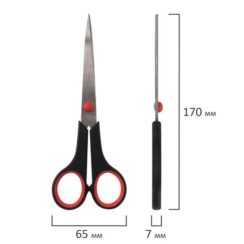 Ножницы STAFF EVERYDAY, 170 мм, бюджет, резиновые вставки, черно-красные, ПВХ чехол, 237498