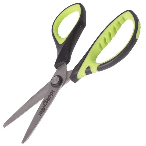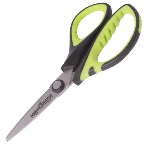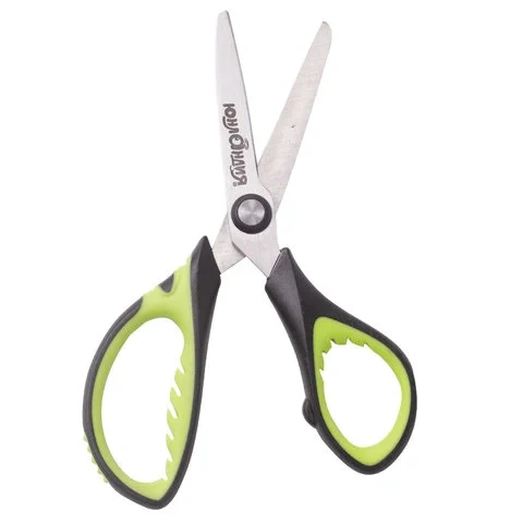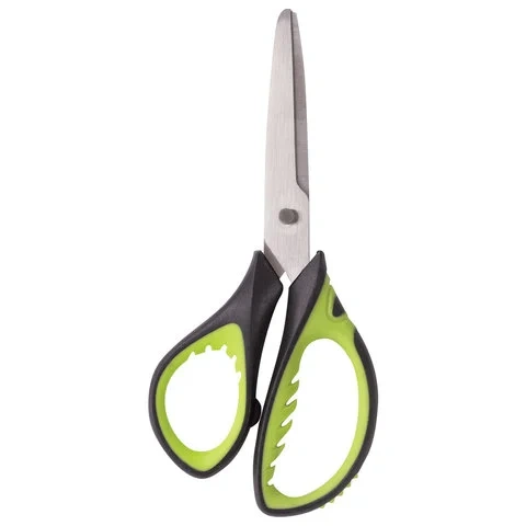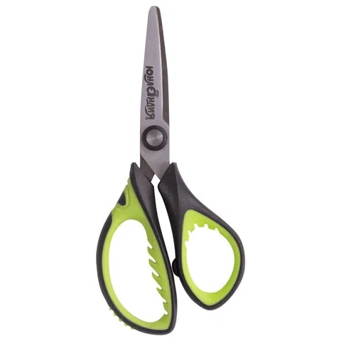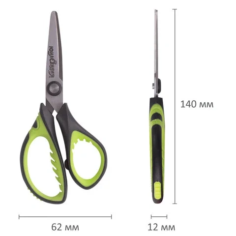Ножницы ЮНЛАНДИЯ 'BASIC', 140 мм, ребристые резиновые вставки, черно-салатовые, европодвес, 236990