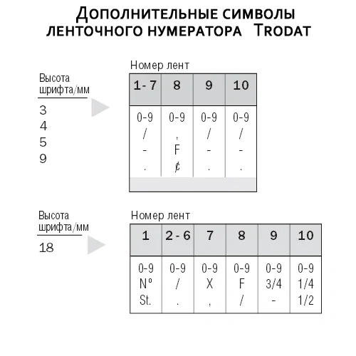| Высота шрифта, мм | 18 |