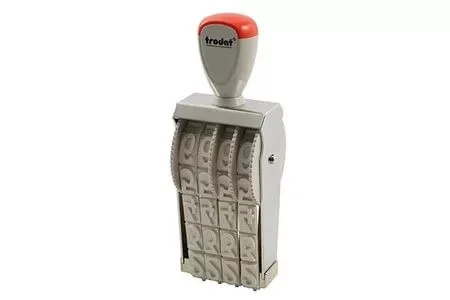 Ленточный колесный механизм позволяет легко устанавливать номер или дату. Обеспечивает 4-значный оттиск. Каждая лента содержит цифры от 0 до 9, а также имеет дополнительные символы. Для получения оттиска предварительно окрашивается при помощи настольной штемпельной подушки.