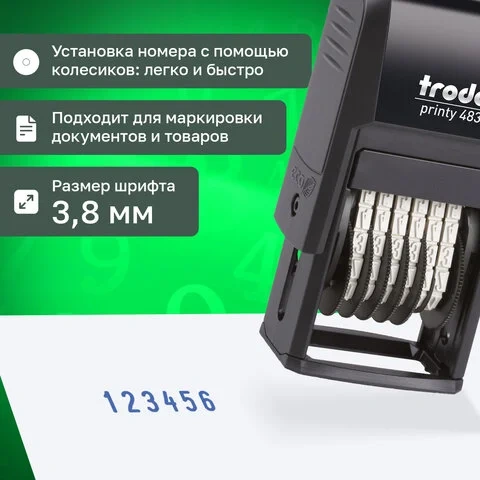 Нумератор с автоматической оснасткой Trodat Printy 6 разрядов, 3.8мм, 4836