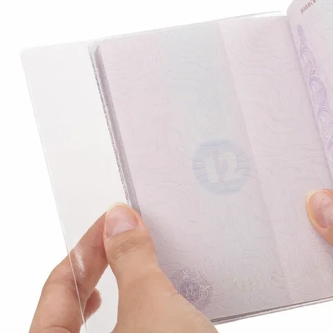 Модель выполнена из качественного прозрачного ПВХ. Размер обложки - 127х88 мм. Обложка легко крепится на каждый лист документа, при этом надежно на нем фиксируется.