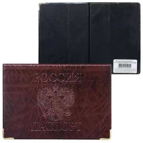 Обложка для паспорта с металлическими уголками. Защищает паспорт от изнашивания, придает респектабельный вид.