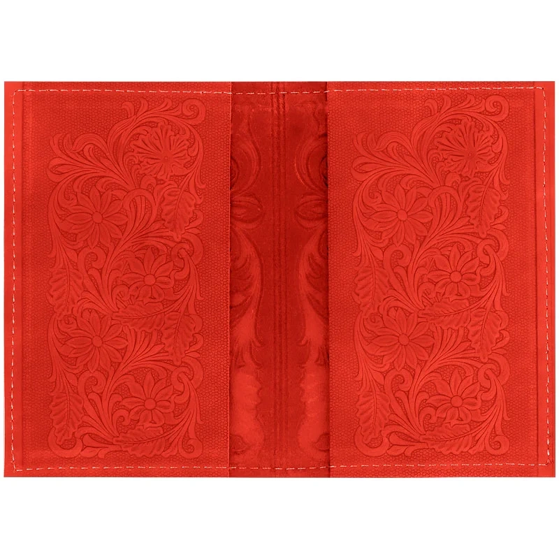 Обложка для паспорта Кожевенная мануфактура, нат. кожа, 'Цветы', красный