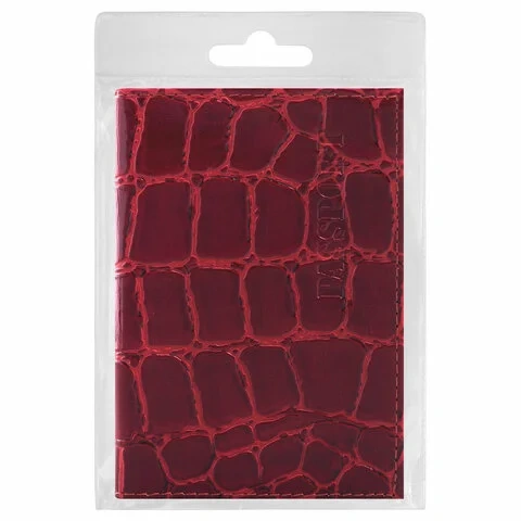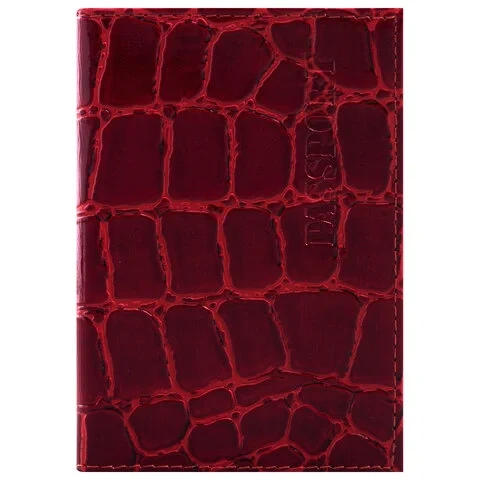 Обложка для паспорта натуральная кожа Croc, 'PASSPORT', красная, BRAUBERG, 237180