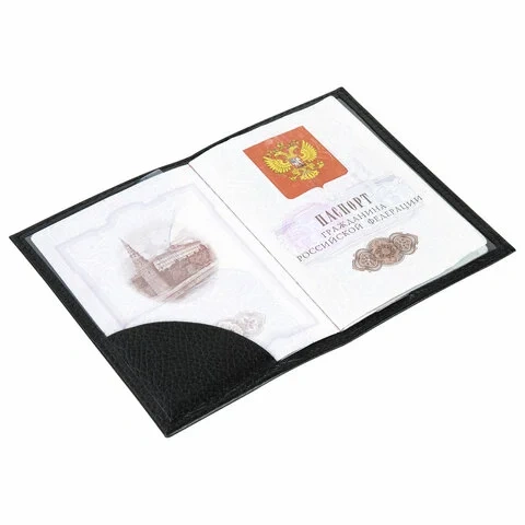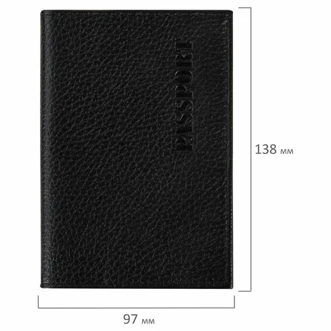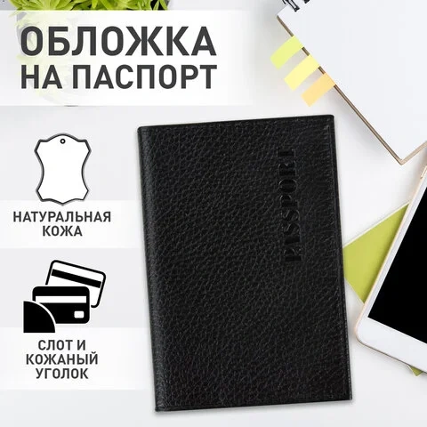 Обложка для паспорта натуральная кожа флоттер, 'PASSPORT', кожаный уголок, черная, BRAUBERG, 238192