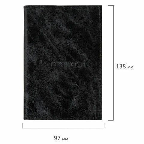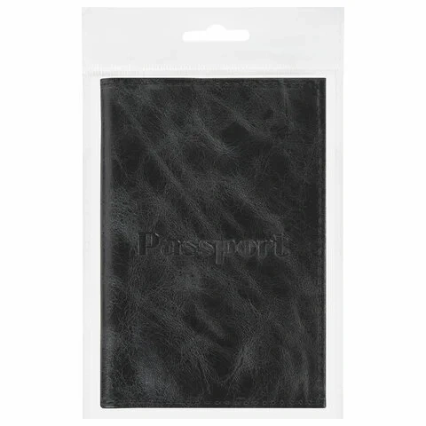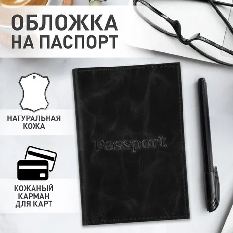 Обложка для паспорта натуральная кожа пулап, 'Passport', кожаные карманы, черная, BRAUBERG, 238198
