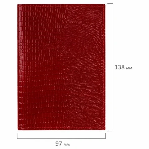 Обложка для паспорта натуральная кожа ящерица, без тиснения, красная, BRAUBERG, 238190