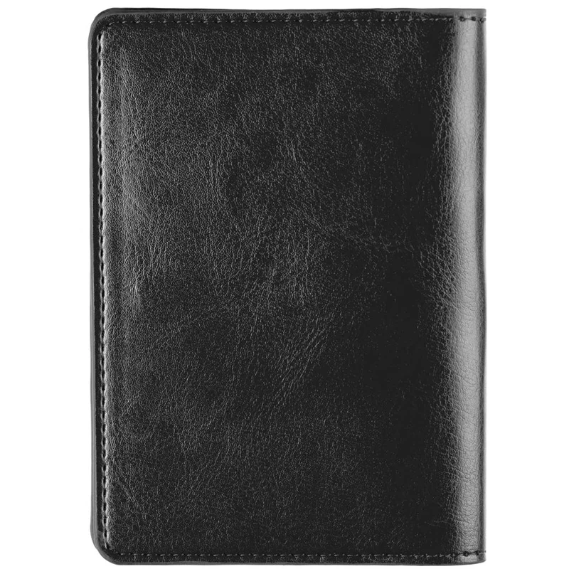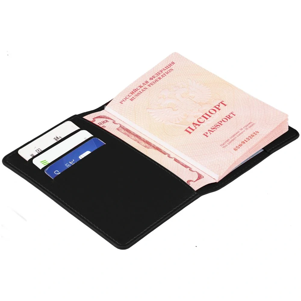 Обложка для паспорта с тремя отделениями для пластиковых карт. Цвет - черный. Размер: 9,8х13,7 см. Материал: искусственная кожа. Возможные виды нанесения: Тиснение; Лазерная гравировка; Тиснение; Шелкография (1 цвет)