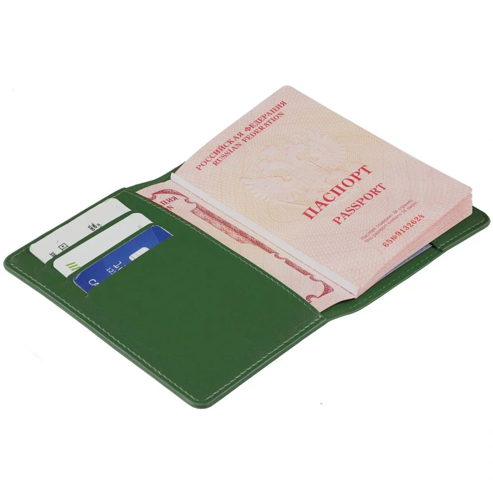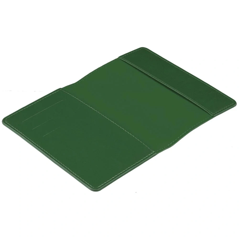 Обложка для паспорта с тремя отделениями для пластиковых карт. Цвет - зеленый. Размер: 9,8х13,7 см. Материал: искусственная кожа. Возможные виды нанесения: Тиснение; Лазерная гравировка; Тиснение; Шелкография (1 цвет)