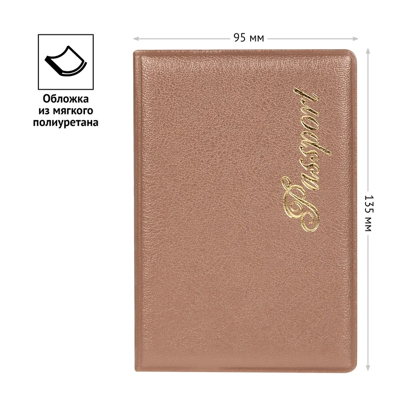 Стильный дизайн обложки в цвете капучино с тиснением золотой фольгой на лицевой стороне поможет обратить на себя внимание. Обложка упакована в индивидуальный пакет.