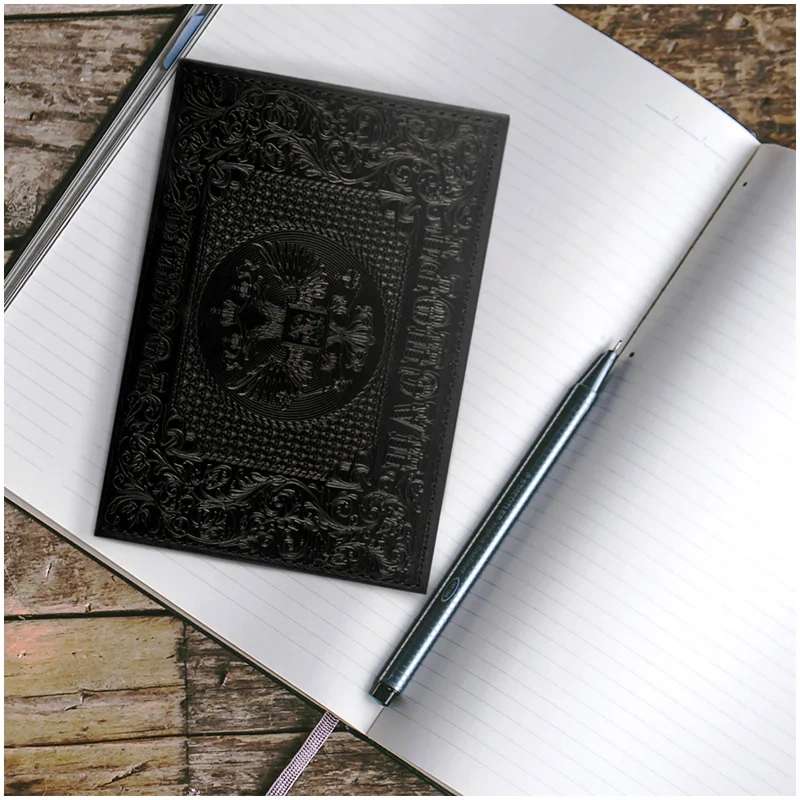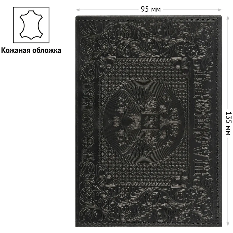 Обложка для паспорта OfficeSpace 'Россия', кожа, тиснение, черная