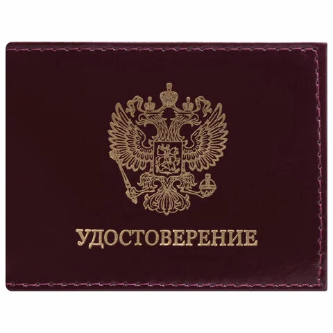 Обложка для удостоверения натуральная кожа шик гладкий, 'Герб', темно-бордовая, STAFF 'Profit', 2371