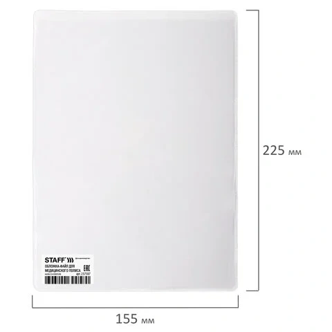 Обложка-файл для медицинского полиса, 225х155 мм, ПВХ, 120 мкм, прозрачная, STAFF, 237587