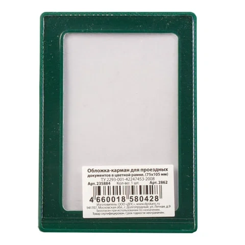 Обложка-карман для проездных документов, карт, пропусков, 105х75 мм, прозрачная, ПВХ, в цветной рамк