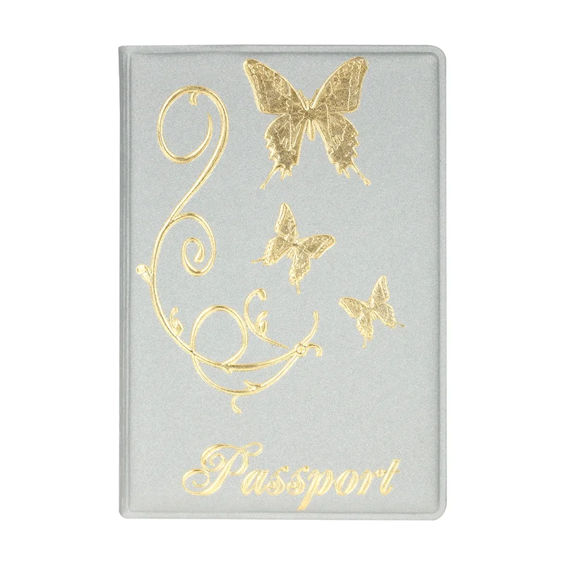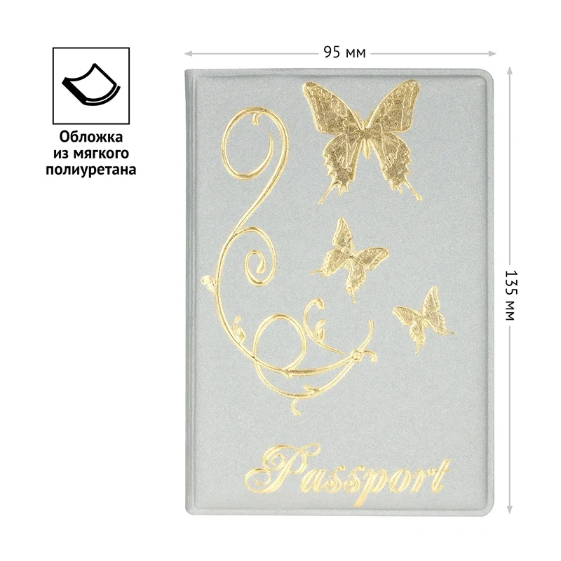 Обложка для паспорта OfficeSpace 'Бабочки' мягкий полиуретан, серебро, тиснение золотом