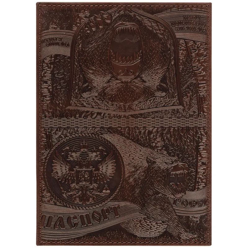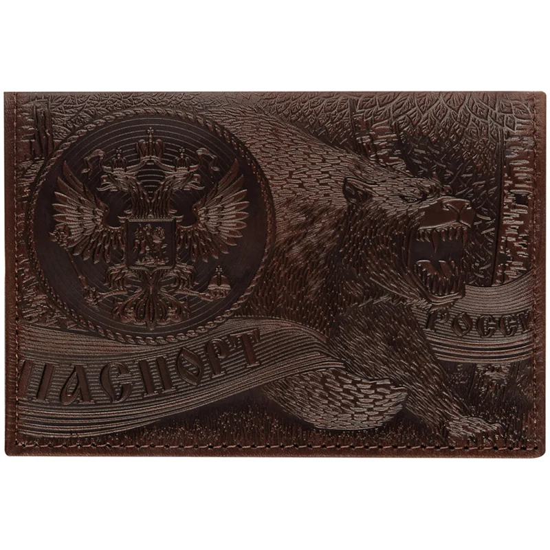Обложка для паспорта OfficeSpace 'Медведь', кожа, тиснение, коричневая