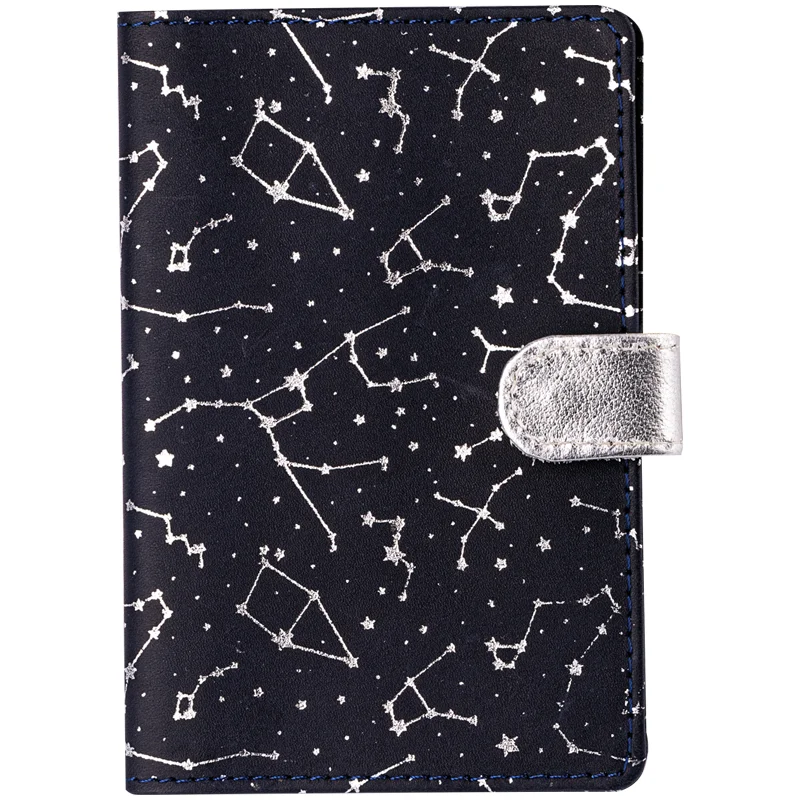 Обложка для паспорта OfficeSpace 'Shine' на кнопке, кожа, темно-синий, тиснение фольгой