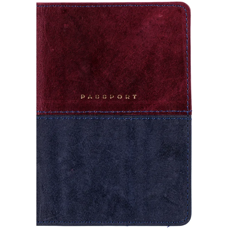 Обложка для паспорта OfficeSpace 'Duo', кожа, бордо+синий, тиснение фольгой