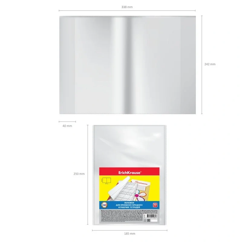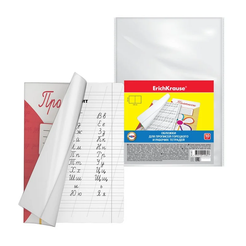 Набор пластиковых обложек ErichKrause Fizzy Clear для прописей Горецкого и рабочих тетрадей, 242х338