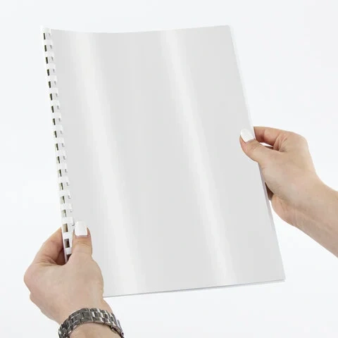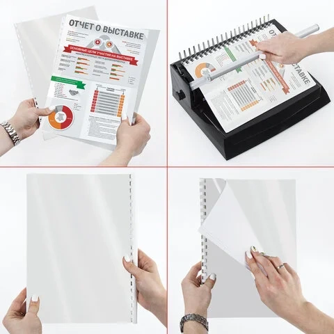 Выполнены из прочного, износостойкого картона белого цвета и плотностью 250 г/м2. Имеют глянцевую структуру. Подходят для документов формата А4. 100 штук в комплекте.