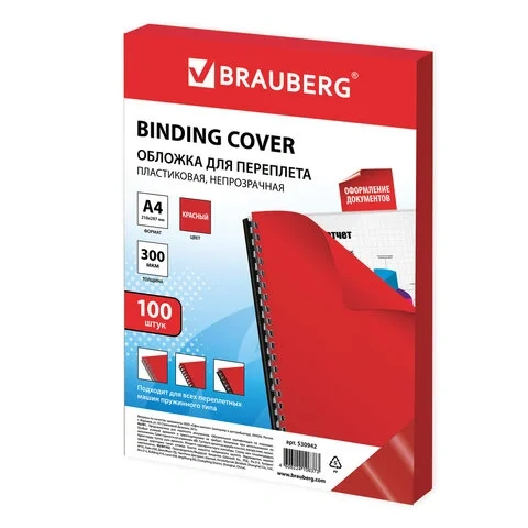 Обложки для переплета пластиковые Brauberg красные, А4, 300 мкм, 100шт