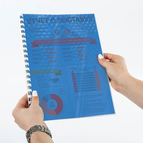 Выполнены из прочного, износостойкого пластика плотностью 150 мкм. Представлены в прозрачно-синем цвете. Нестандартное тиснение 'Кристалл' подчеркнет индивидуальность владельца документов. Подходят для документов формата А4. 100 штук в комплекте.