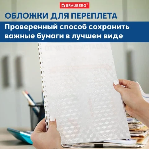 Обложки для переплета пластиковые Brauberg Кристалл прозрачные, А4, 150мкм, 100шт/уп