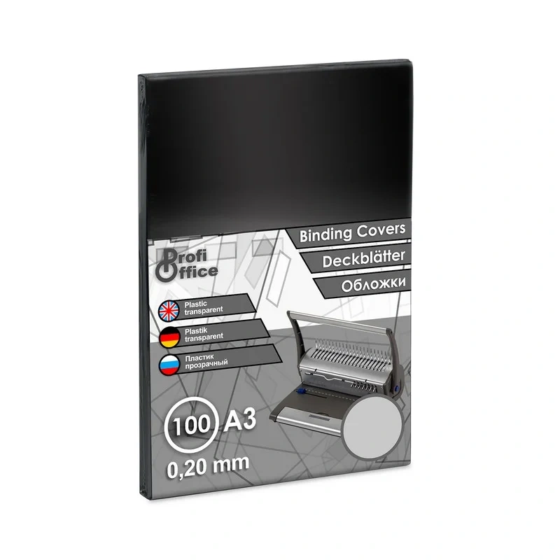 Пластиковые обложки для переплета ProfiOffice А3 формата. Предназначены для переплета документов брошюровщиком с помощью пластиковых и металлических пружин.