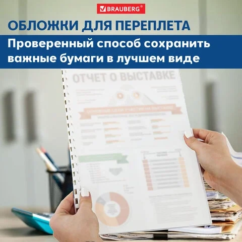 Обложки для переплета пластиковые Brauberg матово-прозрачные, А4, 150 мкм, 100шт, 532160