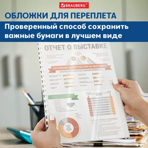 Обложки для переплета пластиковые Brauberg прозрачные, А3, 150 мкм, 100шт, 532157