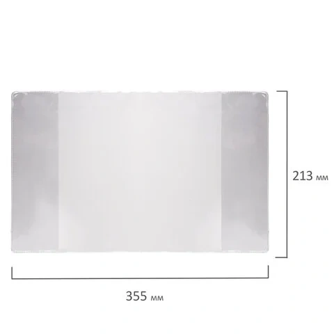 Прозрачная плотная обложка предназначена для тетрадей и дневников. Изготовлена из поливинилхлорида (ПВХ) толщиной 120 мкм. Размер: ширина - 355 мм, длина - 213 мм. В комплекте 10 штук. Традиционная, с двумя клапанами, без возможности регулировки по ширине.