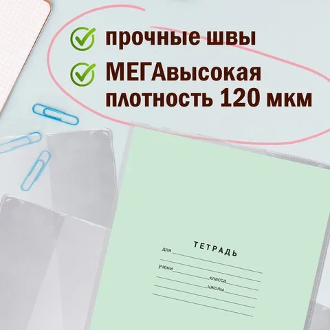 Обложки ПВХ для тетради и дневника, ПИФАГОР, комплект 10 шт., прозрачные, плотные, 120 мкм, 213х355
