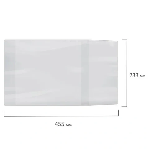 Прозрачная обложка предназначена для учебников с возможностью регулировки по ширине. Плотная, изготовлена из поливинилхлорида (ПВХ) толщиной 120 мкм. Размер: ширина - 455 мм, длина - 233 мм. В комплекте 5 штук.