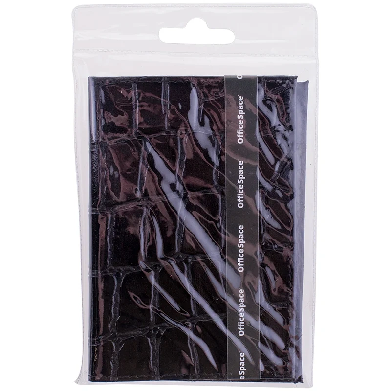 Обложка для паспорта Officespace Croc черная, кожа тип 2