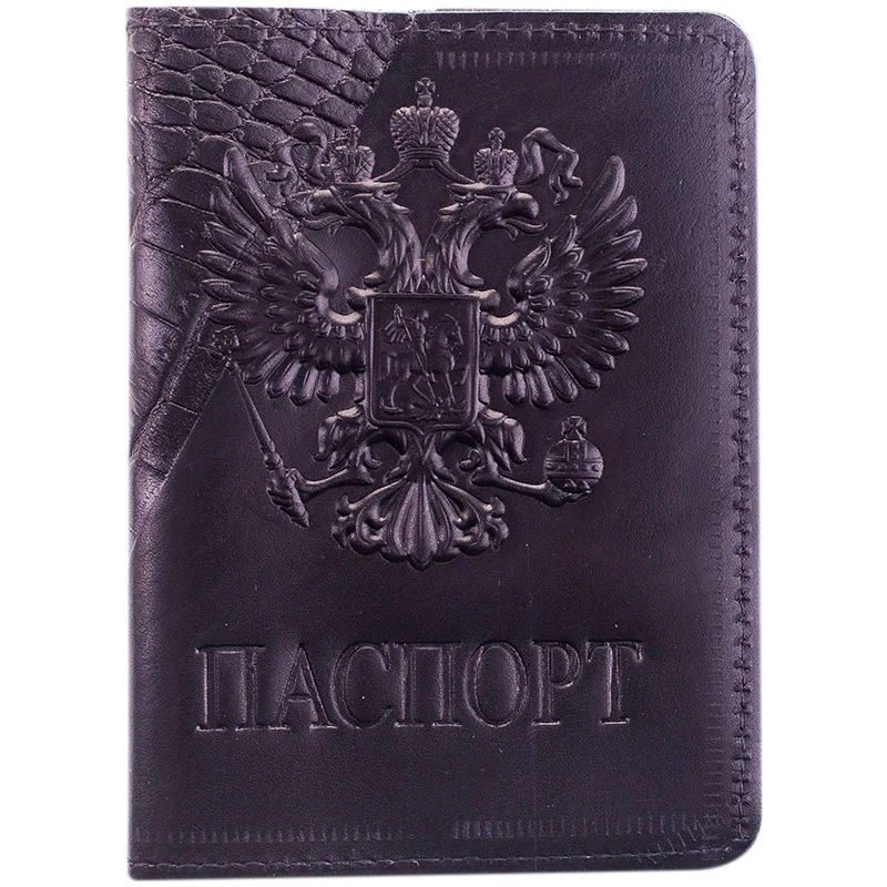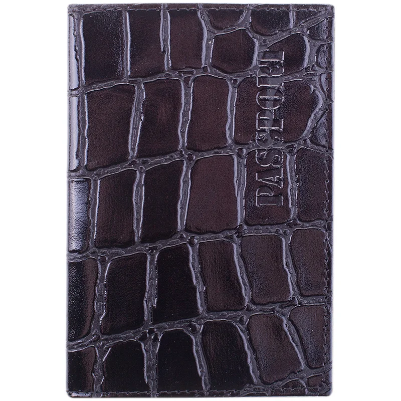 Обложка для паспорта Officespace Croc темно-коричневая, кожа тип 2