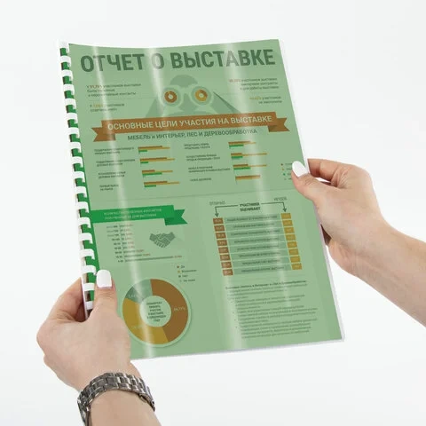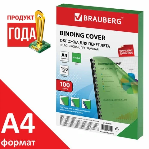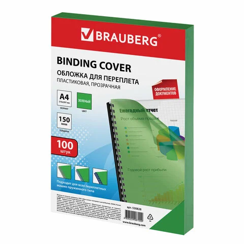 Обложки для переплета пластиковые Brauberg прозрачно-зеленые, А4, 150 мкм, 100шт