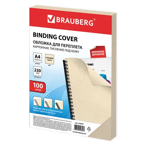 Обложки для переплета картонные Brauberg слоновая кость, А4, 230 г/кв.м, 100шт