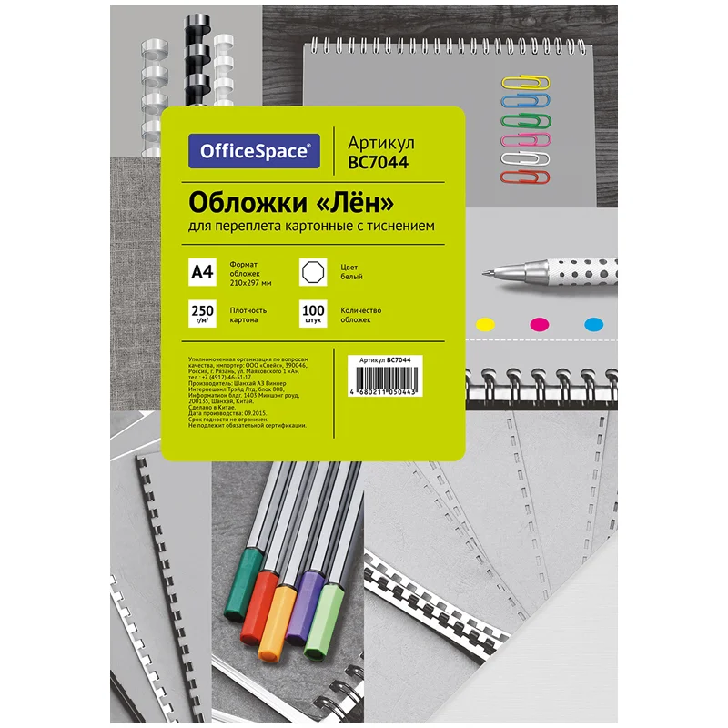 Обложки для переплета картонные Officespace Лен белые, А4, 250г/кв.м, 100шт