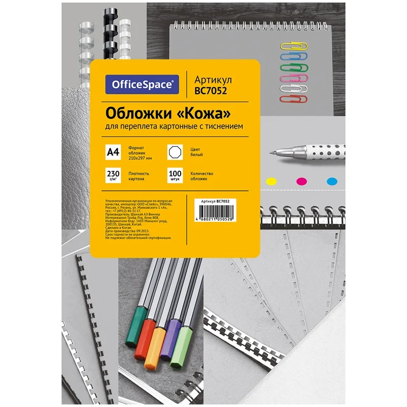 Обложки для переплета картонные Officespace Глянец белые, А4, 250г/кв.м, 100шт