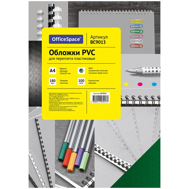 Обложки для переплета пластиковые Officespace PVC прозрачные, А4, 150мкм, 100шт